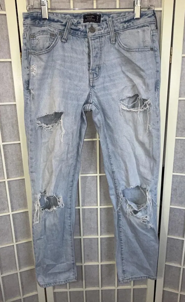Abercrombie & Fitch Ames slim boyfriend super distressed light wash jeans in USA Women’s Size 25/0R,... Show more