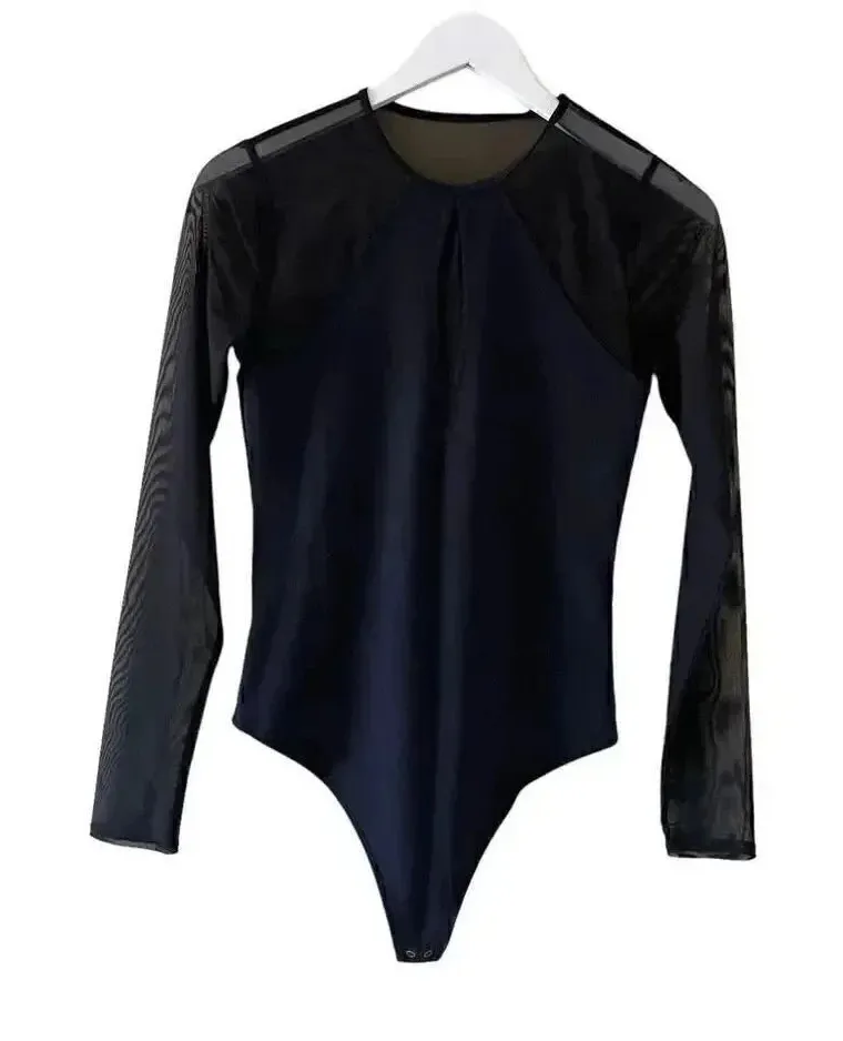 Abercrombie and Fitch Women’s Black Soft Long Sleeves Mesh Square Neck Bodysuit SZ S # 1112 Excellen... Show more