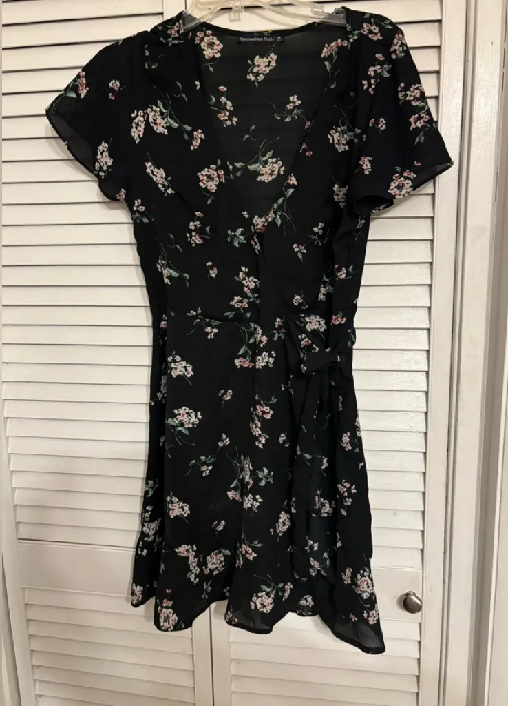 Abercrombie & Fitch Dress Women Medium Floral Black Wrap Ruffled Mini Short Sleeve Black with flo... Show more