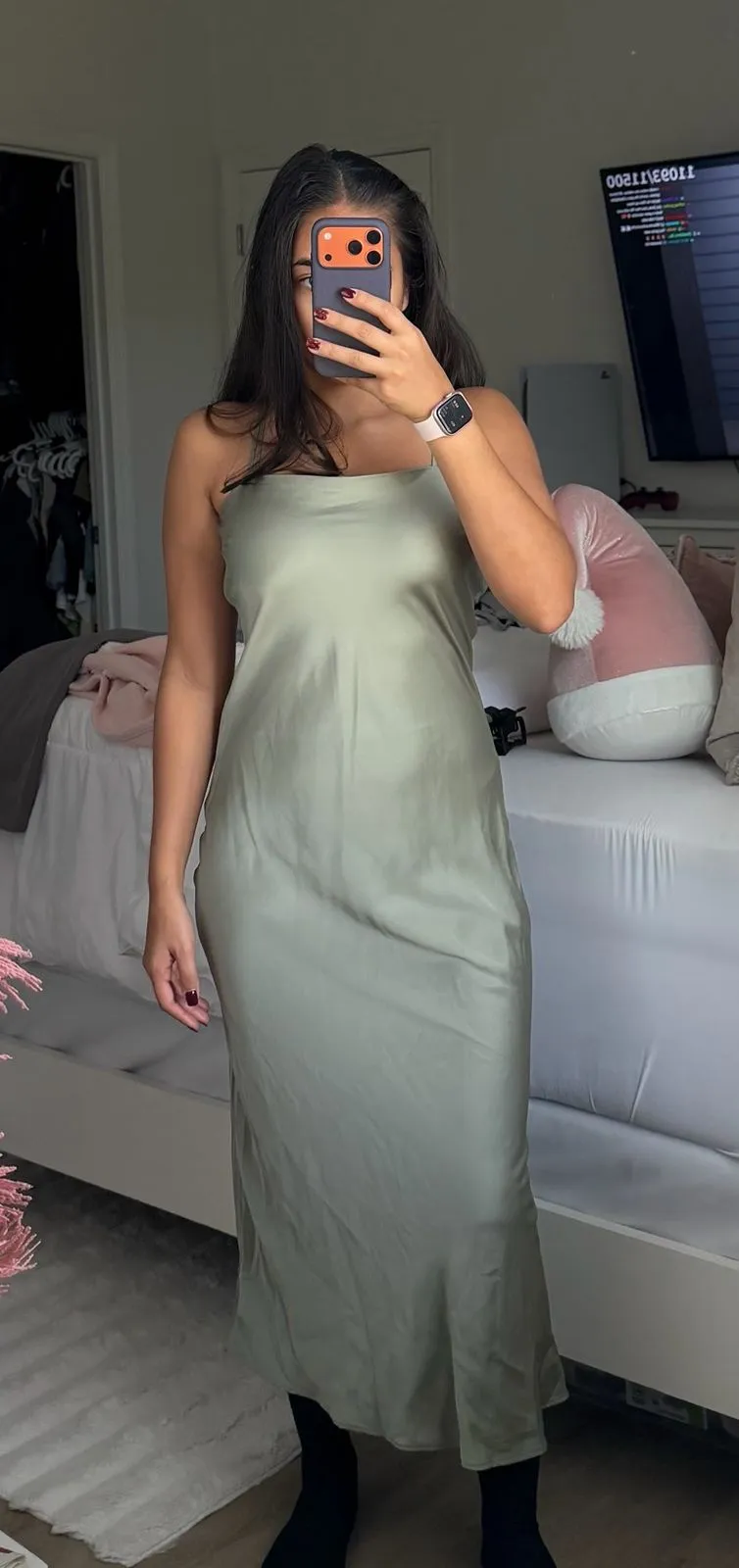 No flaws! Brand New With Tags! Size XS PETITE. Runs true to size. I am 5’2 and 120 pounds and this f... Show more