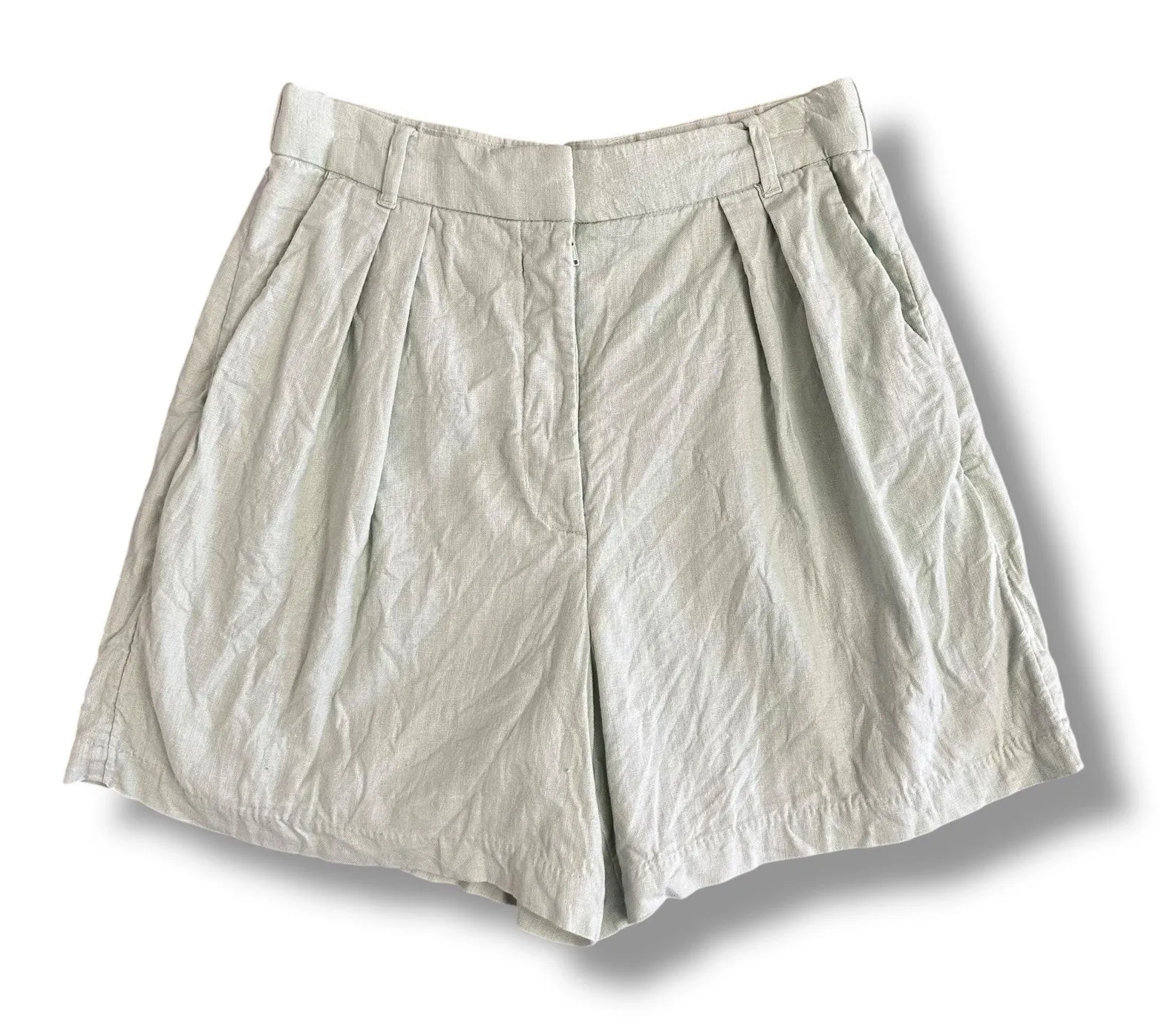 abercrombie shorts, linen shorts, summer shorts, sage green shorts, pleated shorts women, high rise shorts, tailored shorts, relaxed fit shorts, resort wear, vacation shorts, breathable fabric shorts, linen blend, cotton linen shorts, minimalist shorts, coastal chic shorts, capsule wardrobe shorts