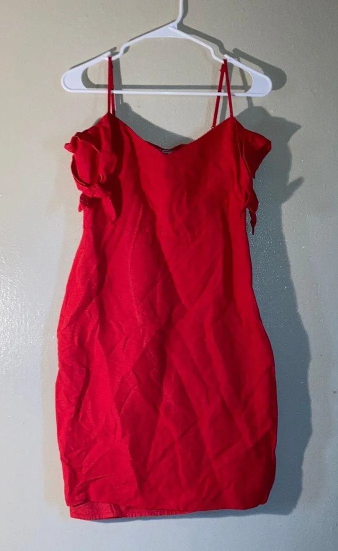 Abercrombie and Fitch off shoulder tie bodycon dress women size small red Has a small slit on the ba... Show more