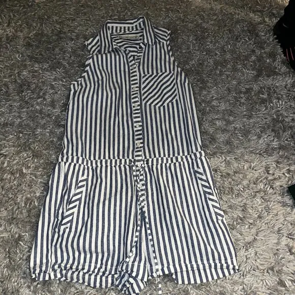 abercrombie and fitch pun stripe button up romper size xs cinchable waist
