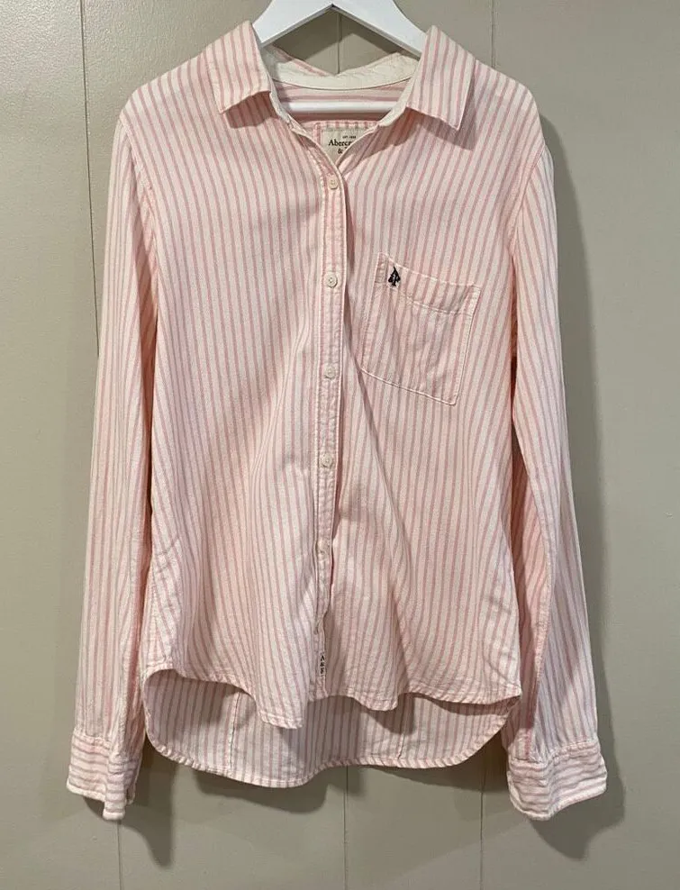 Classic and effortless, this Abercrombie & Fitch long sleeve button-down shirt features a soft pink... Show more