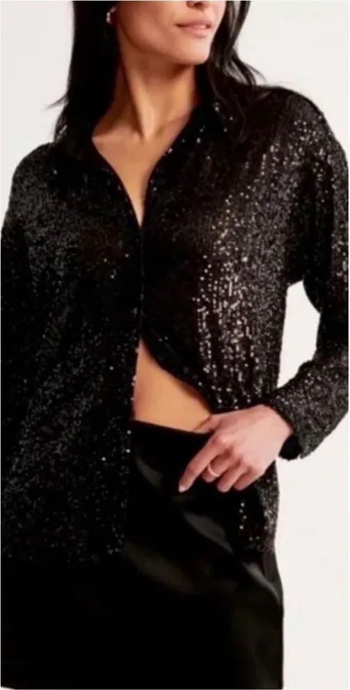Abercrombie and Fitch Sequin Button Down Top in Black. Was an online exclusive. Classic long sleeve... Show more