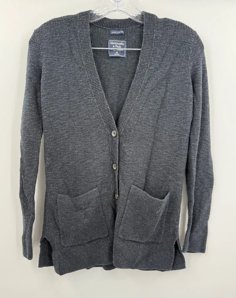 Abercrombie & Fitch Women's 100% Cotton Button Up Cardigan Navy/Gray Size XS Long Sleeve Side Slips... Show more