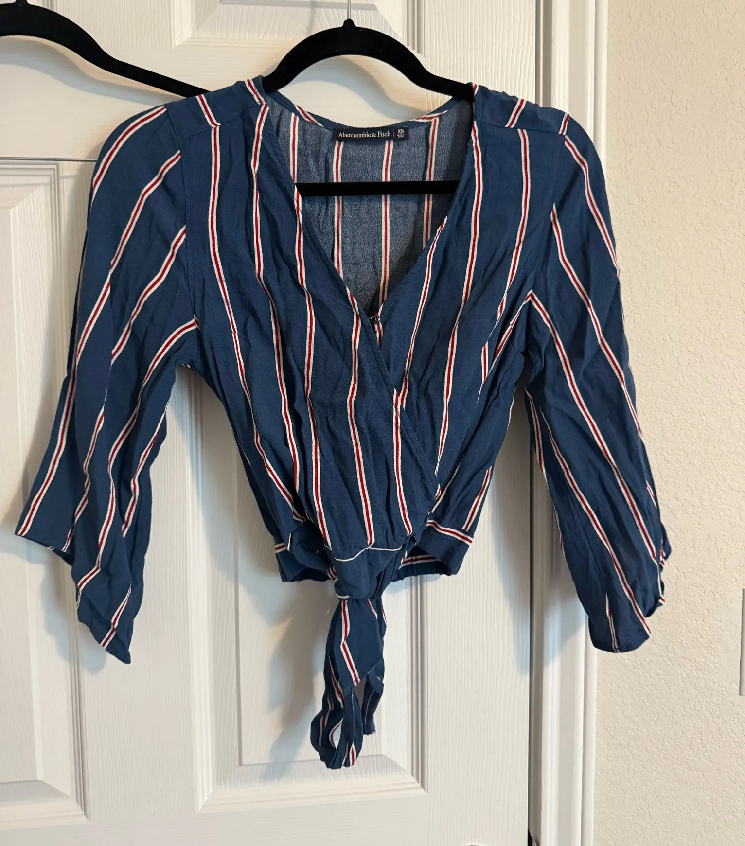 Abercrombie and Fitch wrap top size extra small blue and red striped - $10 - From Rachel