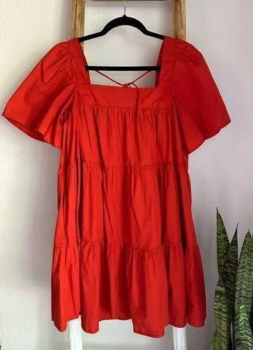 Discontinued! Flattering short-sleeve mini dress, featuring on-trend angel sleeves, square neckline... Show more