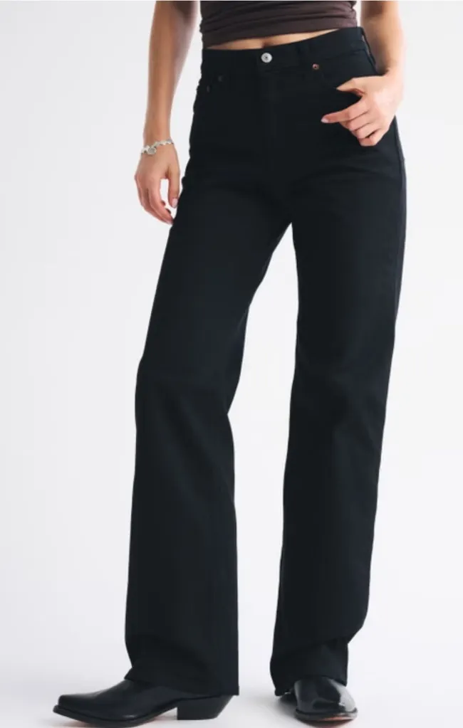 90’s Relaxed High Rise Curve Love Abercrombie Black Jeans Zip front with button closure Five pocket... Show more