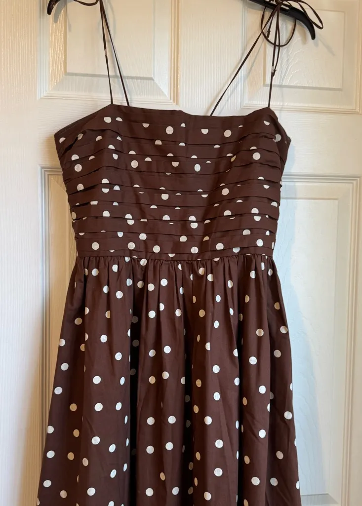 Abercrombie Brown Polka Dot Mini Dress. Tie shoulder detail. Smocked back detail. Worn once.