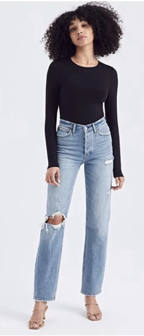 New with tags Size 27/4 regular Curve love Hole in knee Distressing Medium wash High rise Button... Show more