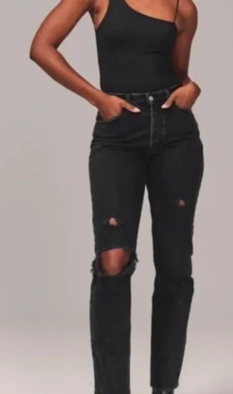 Abercrombie Dad high rise denim jeans in black distressed Size 30 / 10 regular Sold out style! Butt... Show more