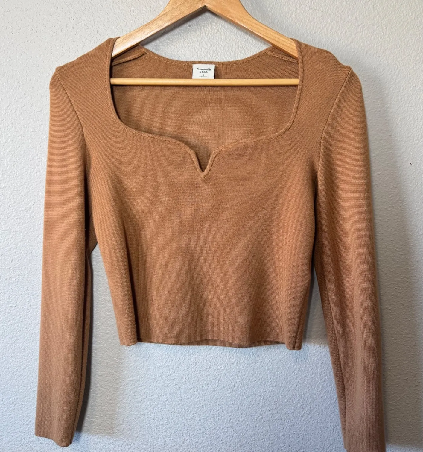 A stylish brown ribbed sweater top with a flattering square neckline and a subtle V-notch detail. Th... Show more