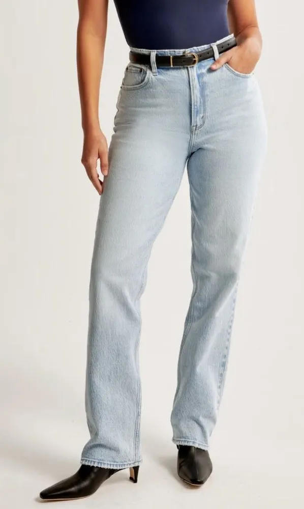 New! Women’s size 0 / 25 Abercrombie & Fitch Curve Love Ultra High Rise 90s Straight jeans. Light wa... Show more