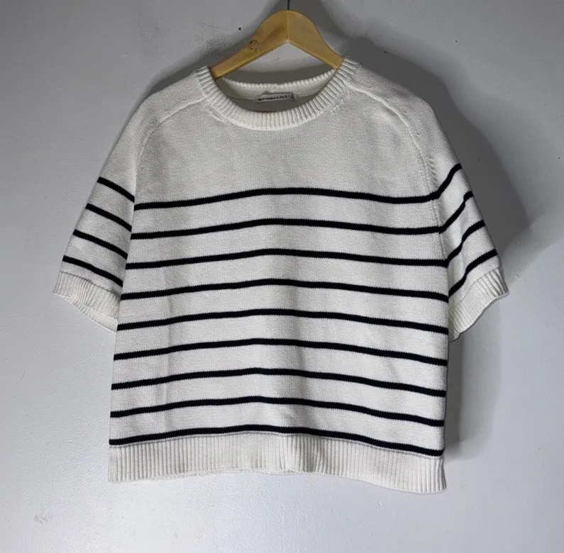 Great condition White with black stripes Armpit to armpit: 25” Length: 23” CP
