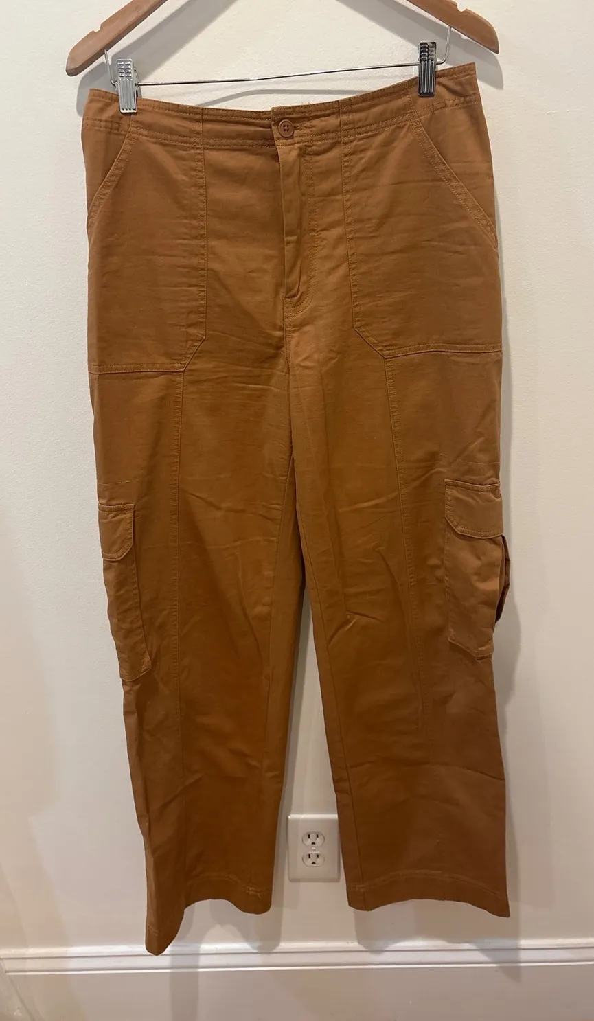 Abercrombie Fitch women's cargo pants in a rich brown hue. Designed with a comfortable elasticized b... Show more