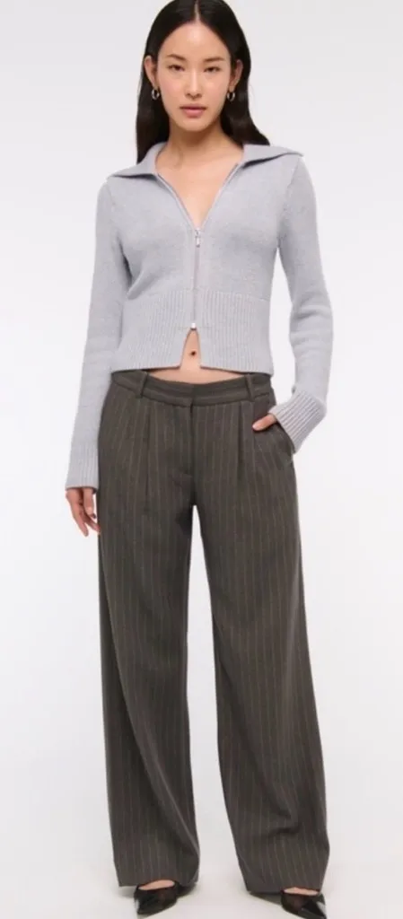 Cozy, classic, and effortlessly stylish. This Abercrombie gray zip-up cardigan features a chic colla... Show more