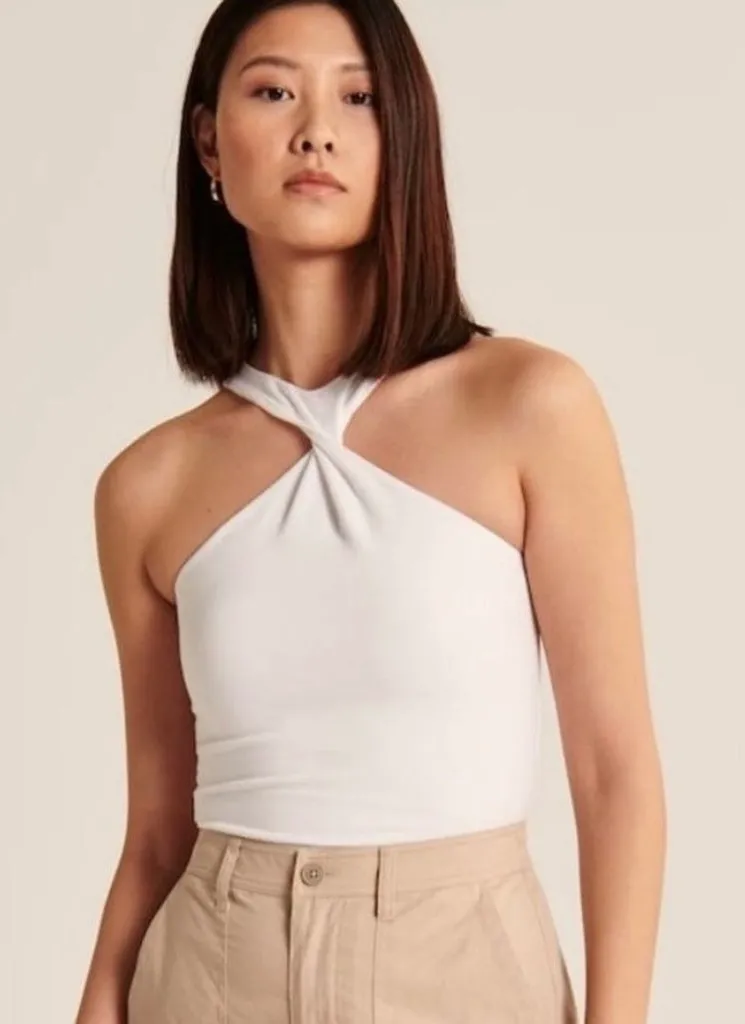 Abercrombie Twist Front Halter Neck Sleeveless Fitted Tank Top Minimalist Medium Excellent Preowned... Show more