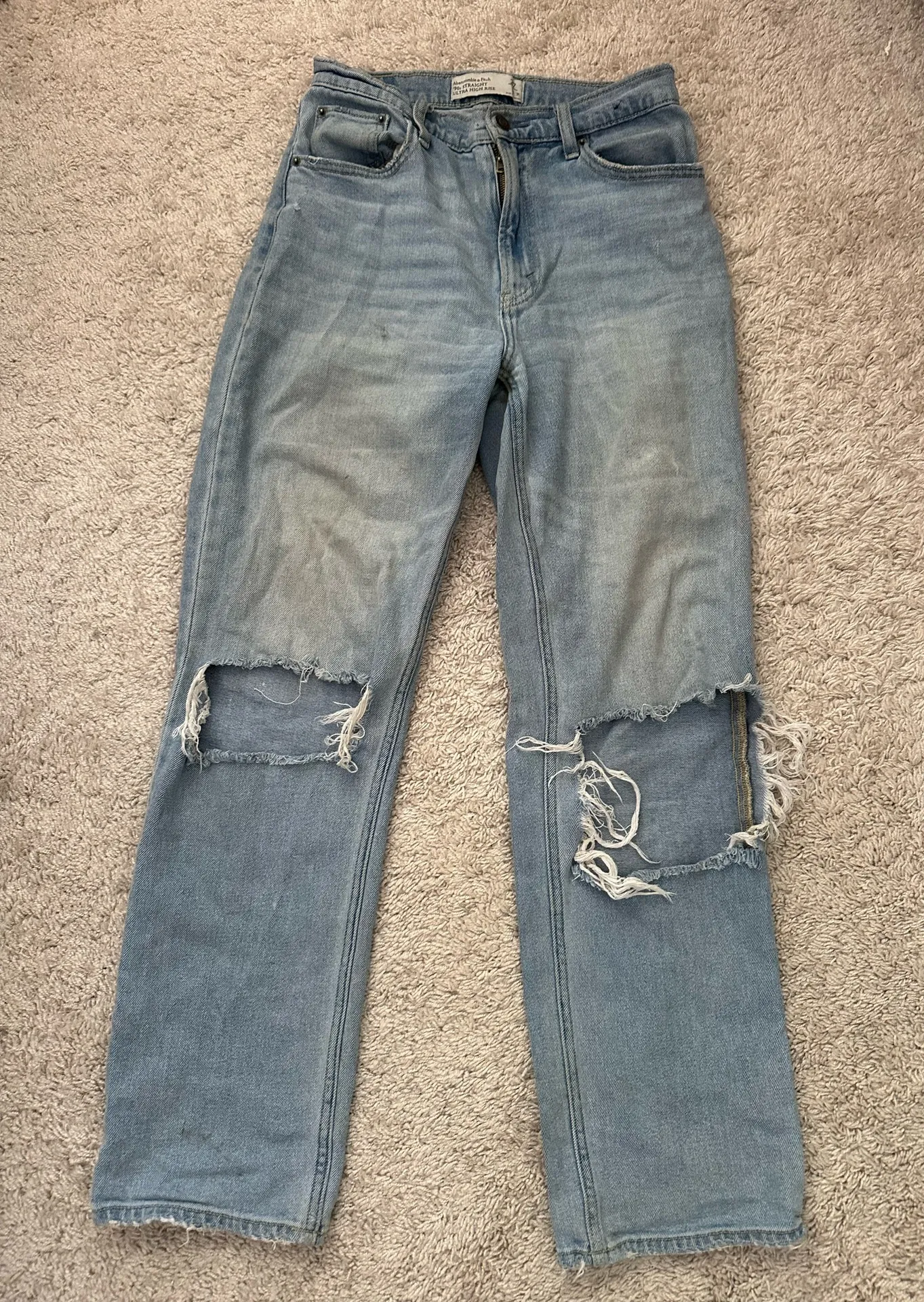 Super cute abercrombie jeans with rips at the knees! super comfortable! Just normal jean wear but st... Show more