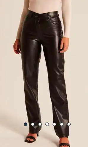 Abercrombie and Fitch 90s leather straight leg pants criss cross waistband! so flattering, not even... Show more