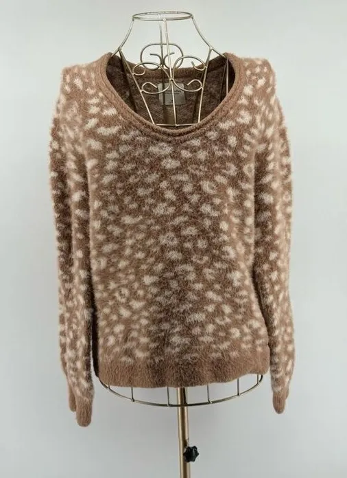 Abercrombie soft a&f cheetah print tan v neck sweater size medium - $20 - From anna