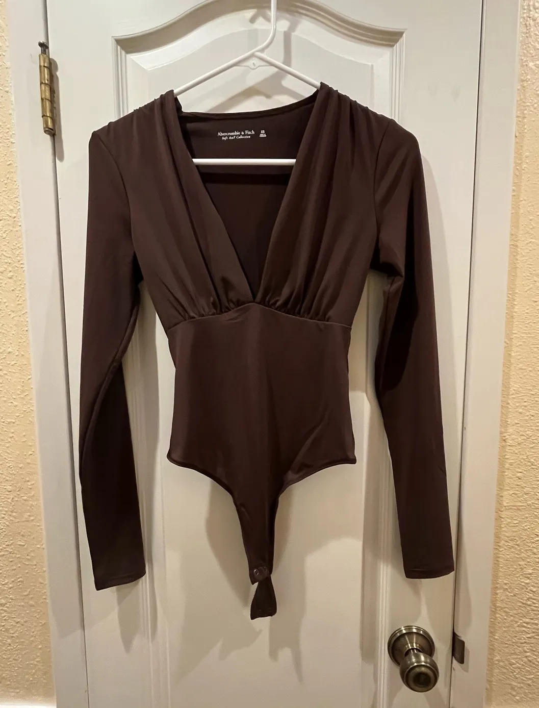 Super cute brown deep v neck bodysuit from Abercrombie. Only worn once. Super stretchy and comfy mat... Show more