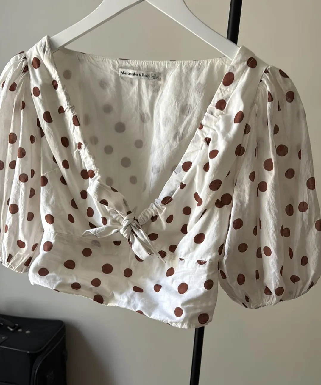 Abercrombie Top Cropped White Brown Bubble Sleeves S - $10 - From Hannah