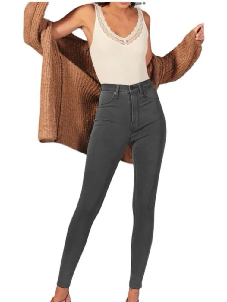 Brand new with tags Abercrombie & Fitch Ultra High Rise Cutoff Dark Grey Jean Leggings Size 27 Long.... Show more