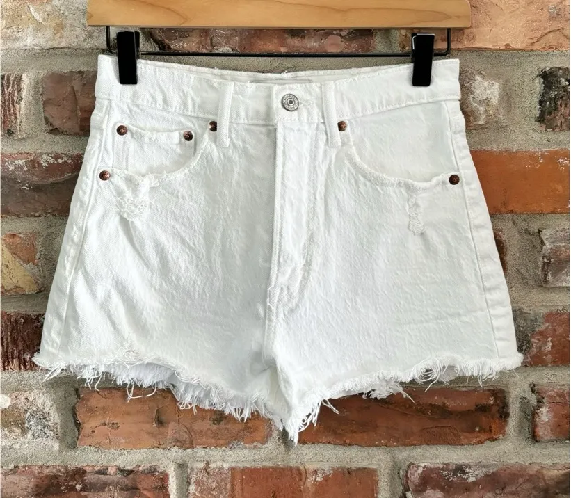 Abercrombie White Mom Jean Shorts High Rise Size 0 / 25. 13” waistband, 11” rise, 2” inseam. In ex... Show more