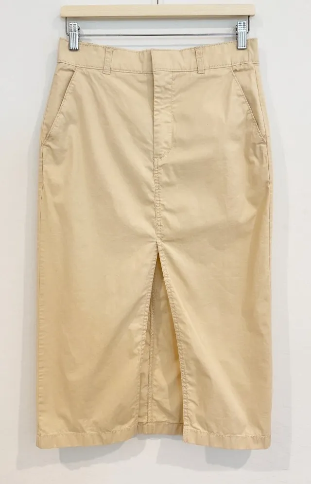 Abercrombie Mid Rise Chino Midi Skirt Front Slit Twill Khaki Work Classic Small Excellent Preowned... Show more