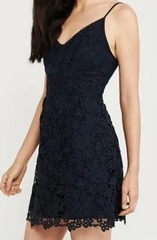 Abercrombie & Fitch Baby Doll Crochet Lace Mini Dress Small Black Dark Cottage Abercrombie & Fitch... Show more