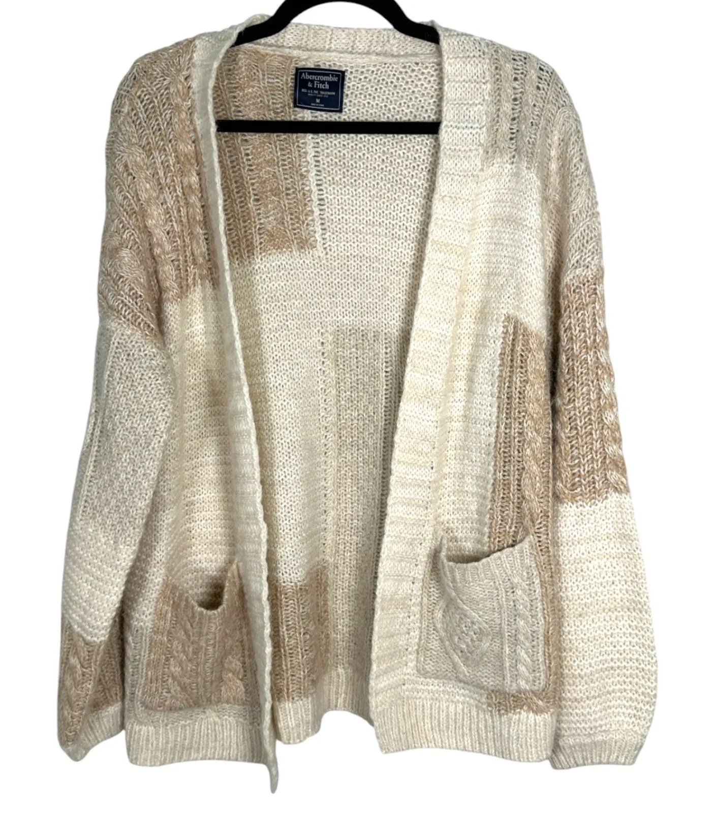 Abercrombie & Fitch Beige Cream Cableknit Wool Alpaca Blend Cardigan Size Medium Size: Medium Styl... Show more