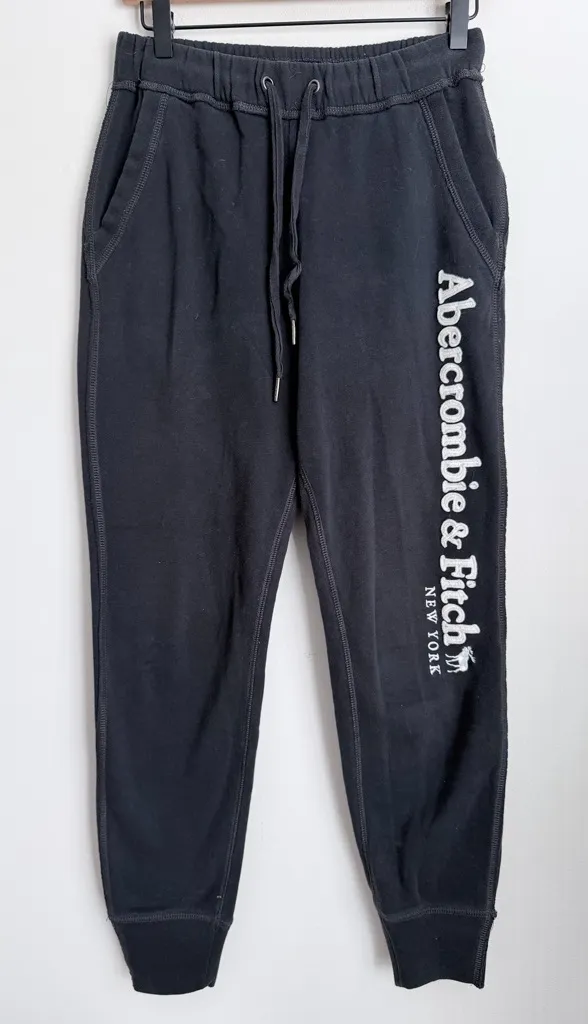 Abercrombie & Fitch black fleece sweatpants soft spellout S - $35 - From Natali