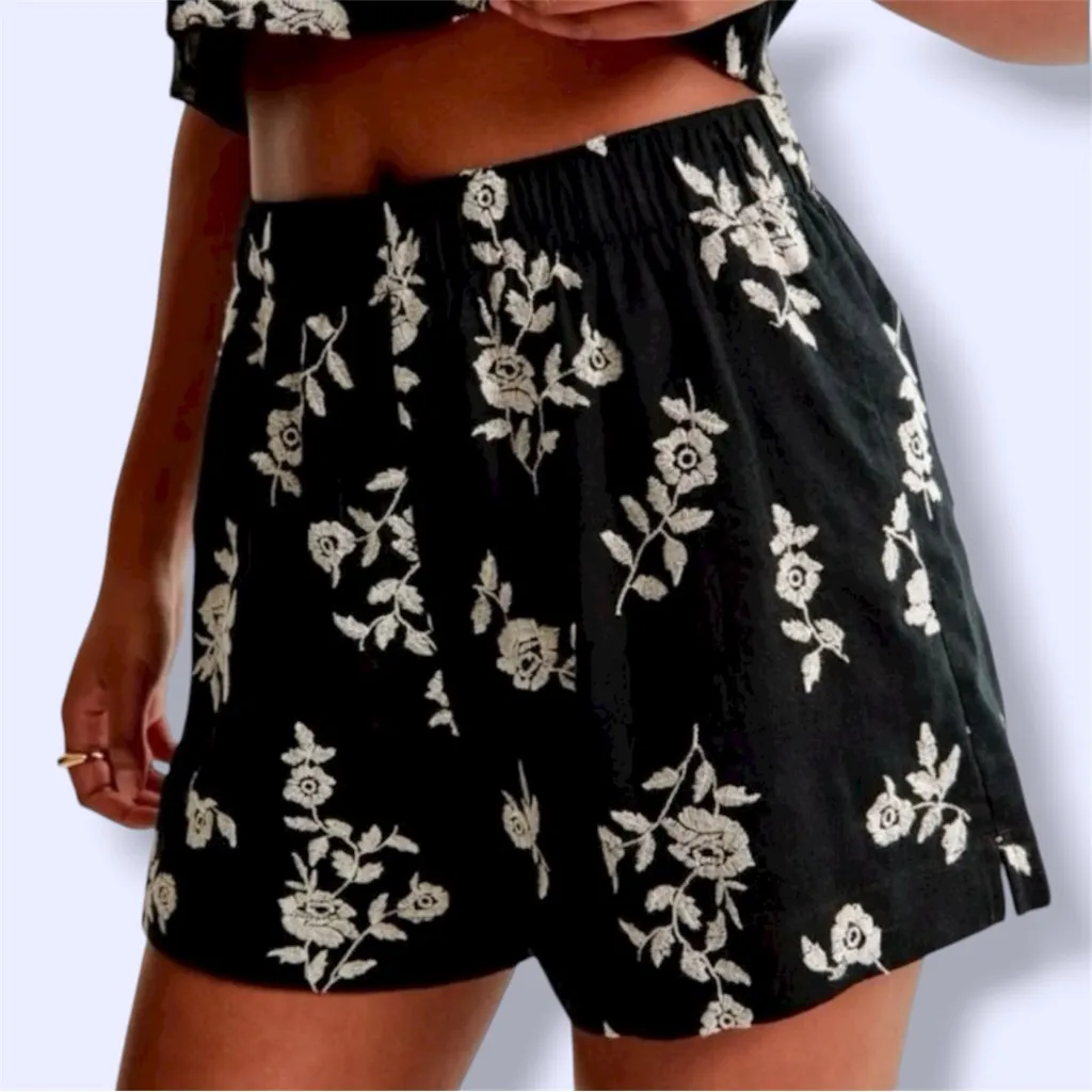 Chic black shorts featuring elegant white floral patterns. Ideal for everyday style.