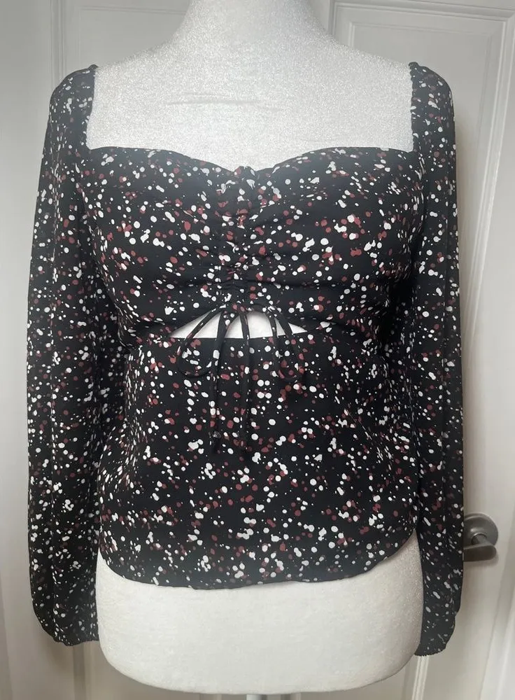 Abercrombie & Fitch Flattering long-sleeve top, featuring functional cinch and tie detail at bust, o... Show more