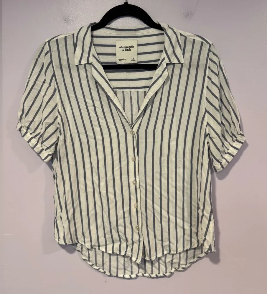 Size small blue and white stripe Abercrombie and fitch short sleeve button down shirt in good condit... Show more