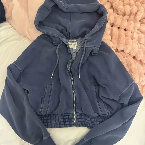 This Abercrombie & Fitch jacket features a stylish cropped design in a rich blue hue, complete with... Show more