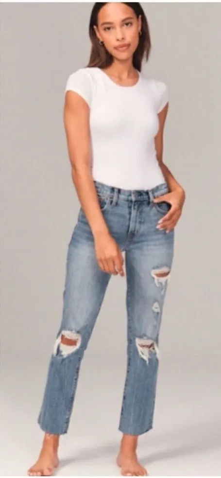 Abercrombie & Fitch Boyfriend Mid-Rise Jeans Distressed Cropped Denim Condition: Excellent conditio... Show more