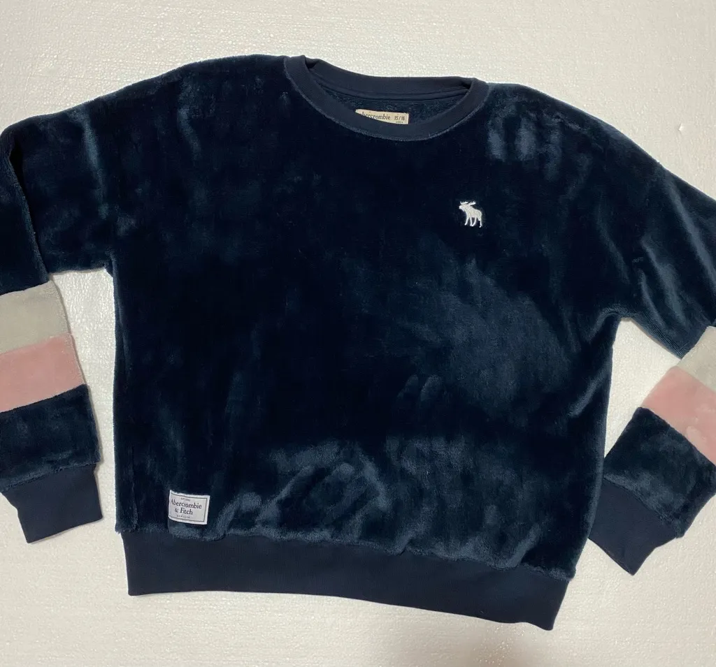 Abercrombie & Fitch Crewneck Deep Pile Sweatshirt Vintage EUC Womens Size M/L. Midnight blue with pi... Show more