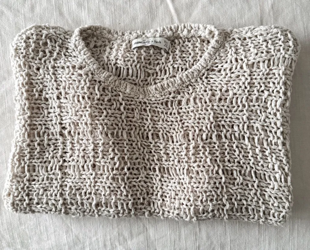 Size XS/S Abercrombie & Fitch crochet swim cover-up sweater featuring an open knit weave, crew neckl... Show more