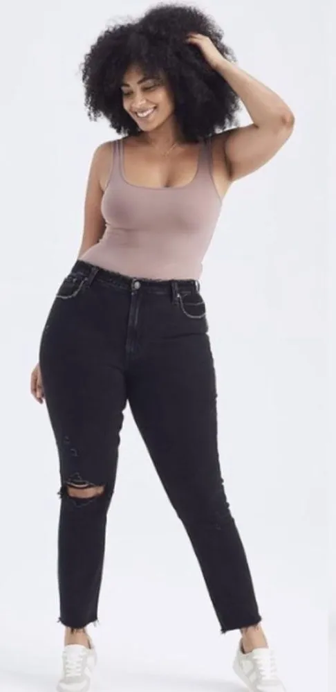 Abercrombie & Fitch Curve Love Skinny High Rise Jeans Black Destroy Denim 27 4L Long. High rise skin... Show more