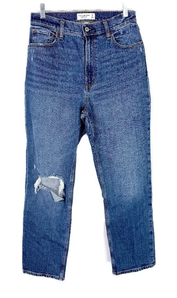 Super cute Abercrombie & Fitch Curve Love The Ankle Straight Ultra High Rise Jeans! factory distres... Show more
