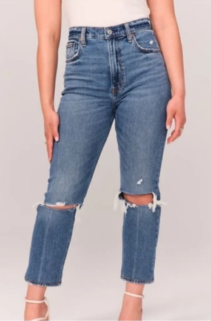 Abercrombie & Fitch curve love The Ankle Straight Ultra High Rise Blue Size 25 - $25 - From Ashley