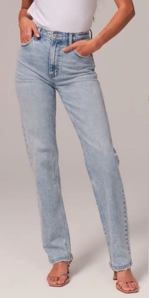 Our Curve Love 90s straight jeans in a medium wash with a clean hem. This fit features an ultra high... Show more
