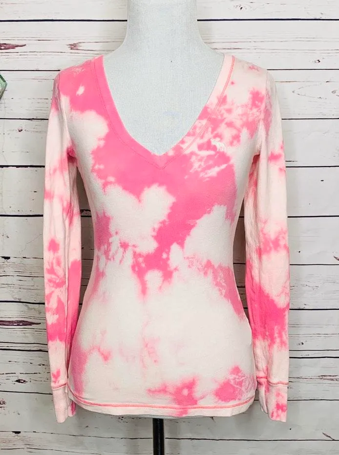 Unique custom made acid wash bleached Hot pink marble tie dye flirty V neck T-shirt Top.. Every shir... Show more