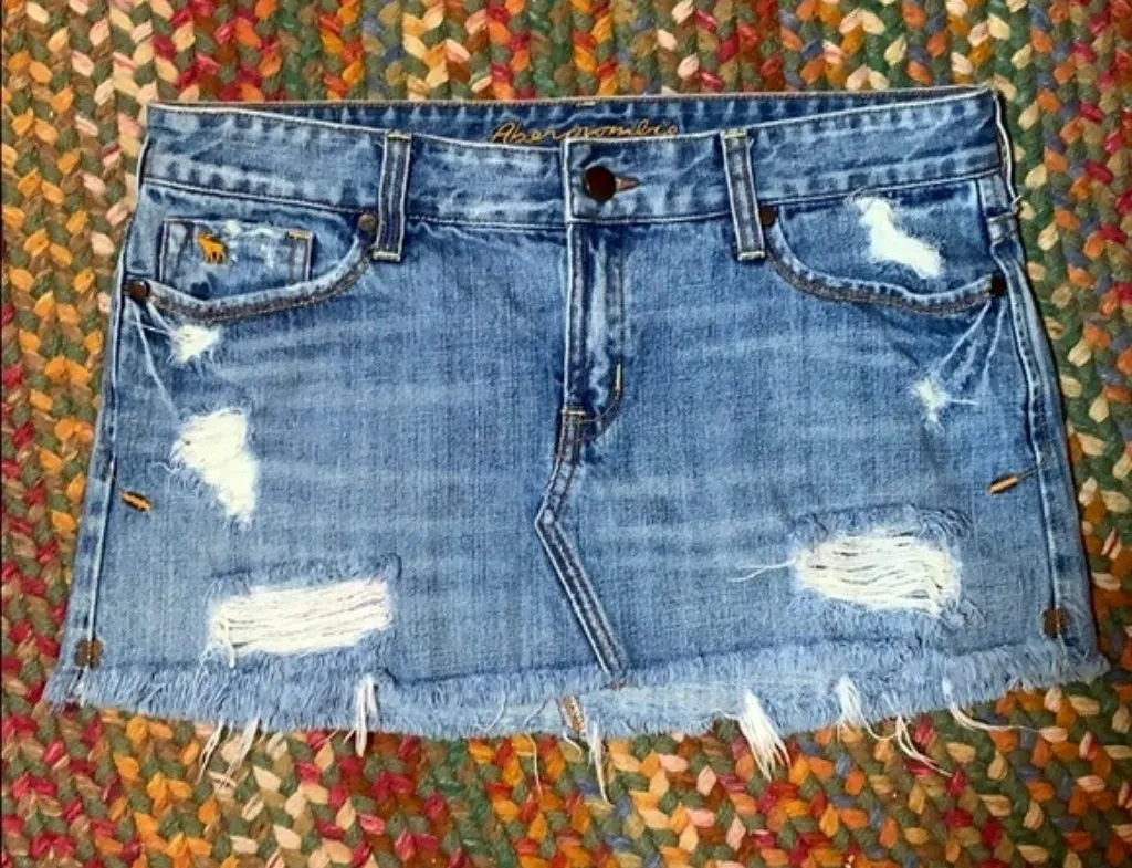 Abercrombie & Fitch Medium Blue Distressed Denim Skirt Pre-Loved and in Great Condition Size 2 100%... Show more