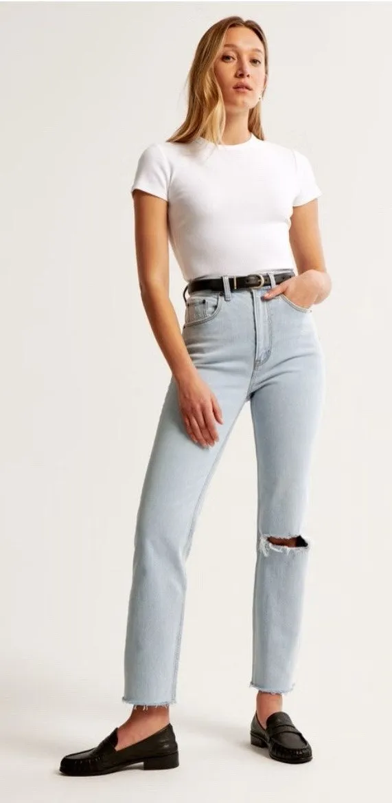 A & F’s “The Ankle Straight” Jeans offers a molded-to-you fit that hugs your curves in all the right... Show more