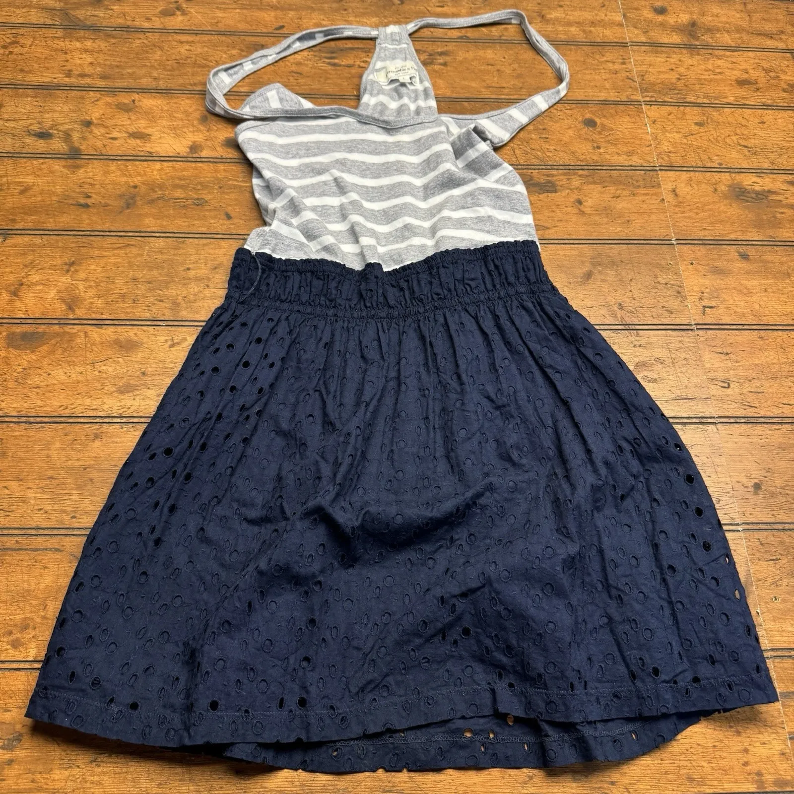 Abercrombie & Fitch Dress Women L Navy Blue Gray Striped Spaghetti Racer