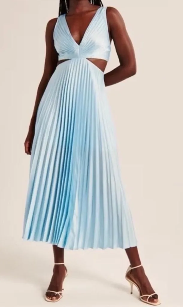 This stunning blue pleated maxi dress is perfect for any special occasion. Its elegant design and fl... Show more