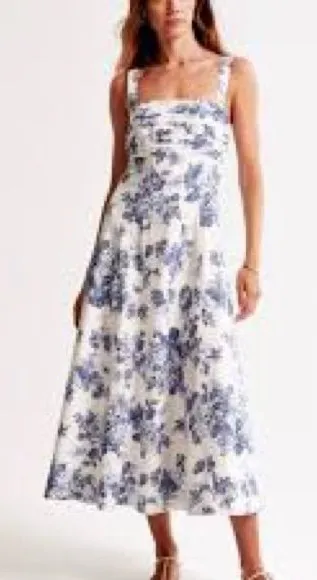 Abercrombie & Fitch Emerson Fit & Flare Midi Dress Sz L ( 12/14)Blue White Floral Cottagecore~Romant... Show more